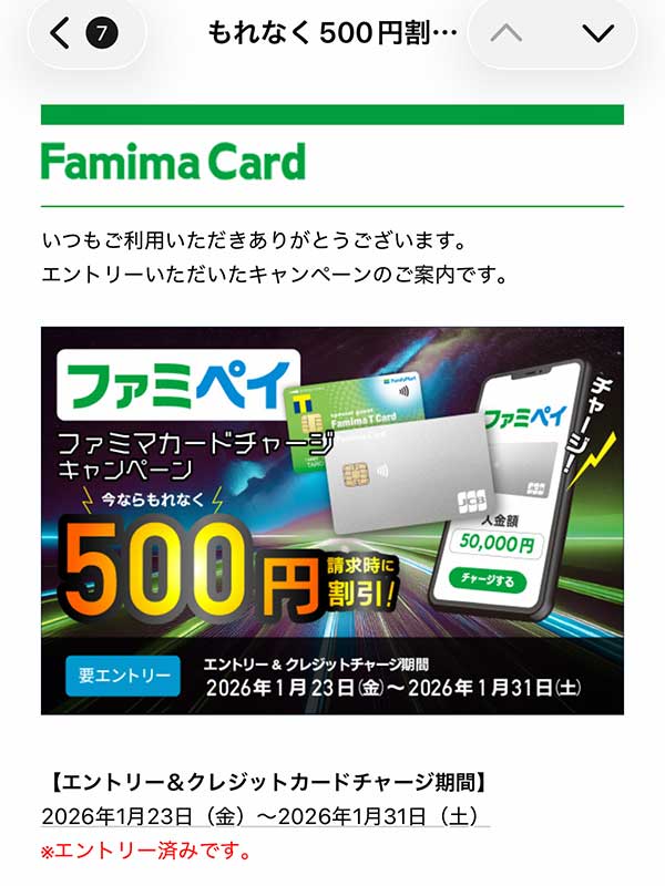 ファミマカードのチャージキャンペーン