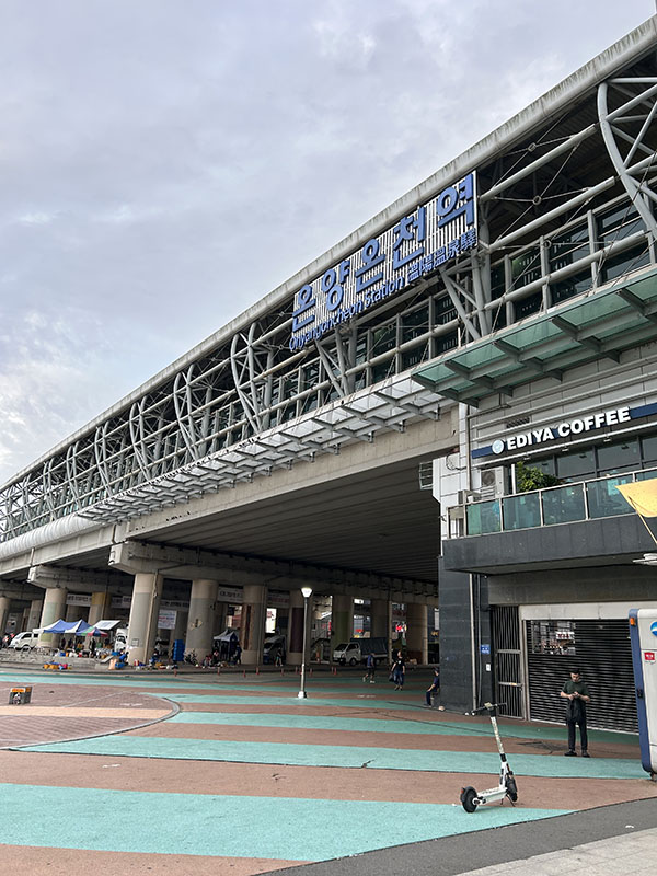出張先周辺は典型的な田舎町でした。前泊した滞在先から会場までは路線バスで移動して、広いキャンパスをさまよいながらたどり着くことができました。ほかの人たちに聞いたところ、みな、公共交通機関は諦めてタクシーを使ったし、案内を改めて見直すとタクシー利用を推奨されていました。むしろ、よく、バスで移動できましたねと感心されました。はからずとも海外移動に慣れてしまうといくつかテクニックが身についてくるものです。どのタイミングで降りるかについては、時間を見る、バス停(駅)を数える、Googleマップで自分の位置を見るなどして、ここだというタイミングで降ります。また、大学だと若い人たちがゾロゾロと降りて同じ目的地に行くのは、ほぼ確定なので、彼らについて行くという戦略もあります。ただし、復路については、最寄り駅までのタクシーを会場デスクの方が手配してくれましたので、素直に甘えました。ボッタクリに警戒していたのですが、そういうことも一切ありませんでした。田舎町から移動する場合、不測のトラブルに巻き込まれてフライトに遅れるのはしんどいので、ソウル市内まで移動しておきました。ソウル市内のホテルは、東横インなので、言うまでもなく、すべて日本語で対応してくれました。