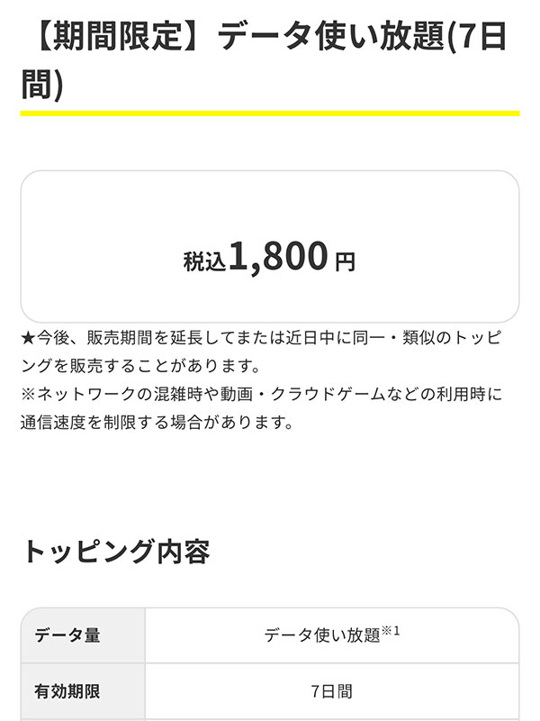 ちょうど松山に帰省しているタイミングに、1週間のギガ使い放題のクーポンをもらえました。もう少し早く気がついていれば、連休初日から適用できて、アハモのギガ消費を抑えることができたことは悔やまれます。ちなみに、30㌐を使ってしまいまして、大容量プランを契約していますので、110㌐まで使えるので問題はないのですが、、。ちなみに、限定トッピングとして、同じ条件のプランが、1,800円でしたので、なかなか太っ腹の特典に思いました。